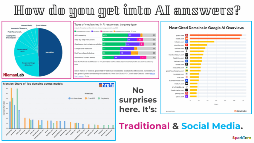 Journalistic sources are increasingly cited by AI tools like ChatGPT, making earned media more valuable than ever for visibility. Building relationships with reporters through proactive engagement and providing authoritative insights can secure valuable mentions. Using tools like SparkToro helps identify the right media and audience, enabling strategic, low-effort PR that drives trust, backlinks, and AI discoverability.