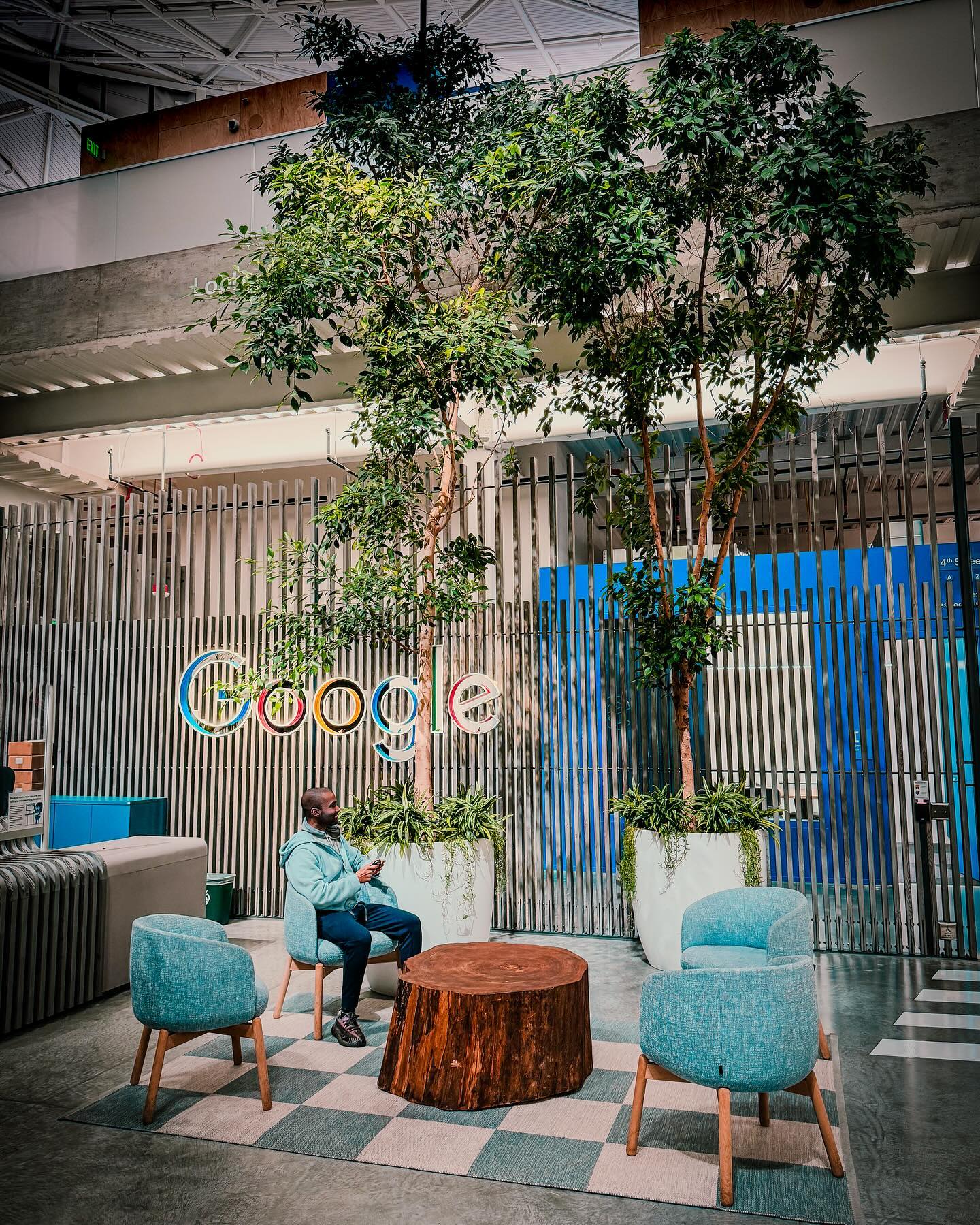 I know this is just a space at the Google office divided up but something caught my eye with this photo. The divider has the Google logo somewhat etched into it. It just looked cool.I found this on In